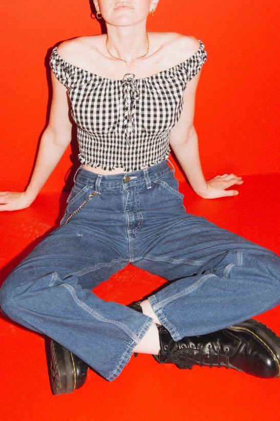 Bnwpt Brandy Melville Black And White Checkered Gingham Marilyn Off Shoulder Top Women S Fashion Tops Other Tops On Carousell